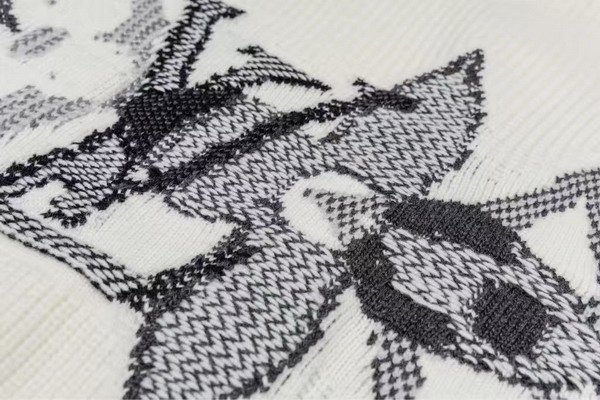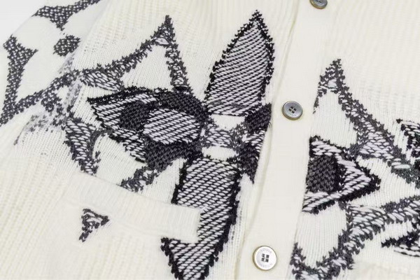 冬のシーズンに最適なウールカーディガン。大ぶりのLVシグネチャーとモノグラム・フラワーを重ね合わせ、雪の結晶を想起させるグラフィカルなモチーフを身頃と袖にあしらいました。ホワイトのボリューム感のあるリブ編みをベースに、グレー&ブルーのコントラストカラーのステッチで表現した洗練されたインターシャニットが、豊かな質感を演出します。ゲレンデでの1日を過ごした後の、心地よいリゾートの夜にぴったりのアイテム。