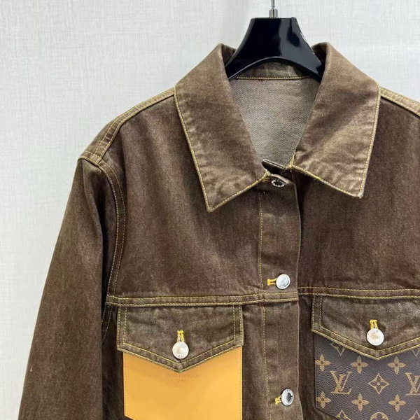 今シーズンならではのエレガントな色合いで新たに登場した定番デニムジャケット。イエローのトップステッチが構造を引き立てる1着です。メゾンのエンブレマティックなバッグ「スピーディ」から着想を得て、左ポケットはモノグラム・キャンバス、右ポケットは「Louis Vuitton Paris」シグネチャーをエンボス加工で施したヌメ革で仕上げました。